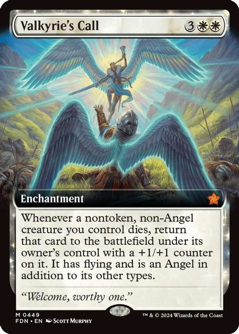 Magic: the Gathering (mtg) Mythic Rare enchantment Valkyrie's Call from Foundations (FDN) last updated 2025-12-13 15:30:32