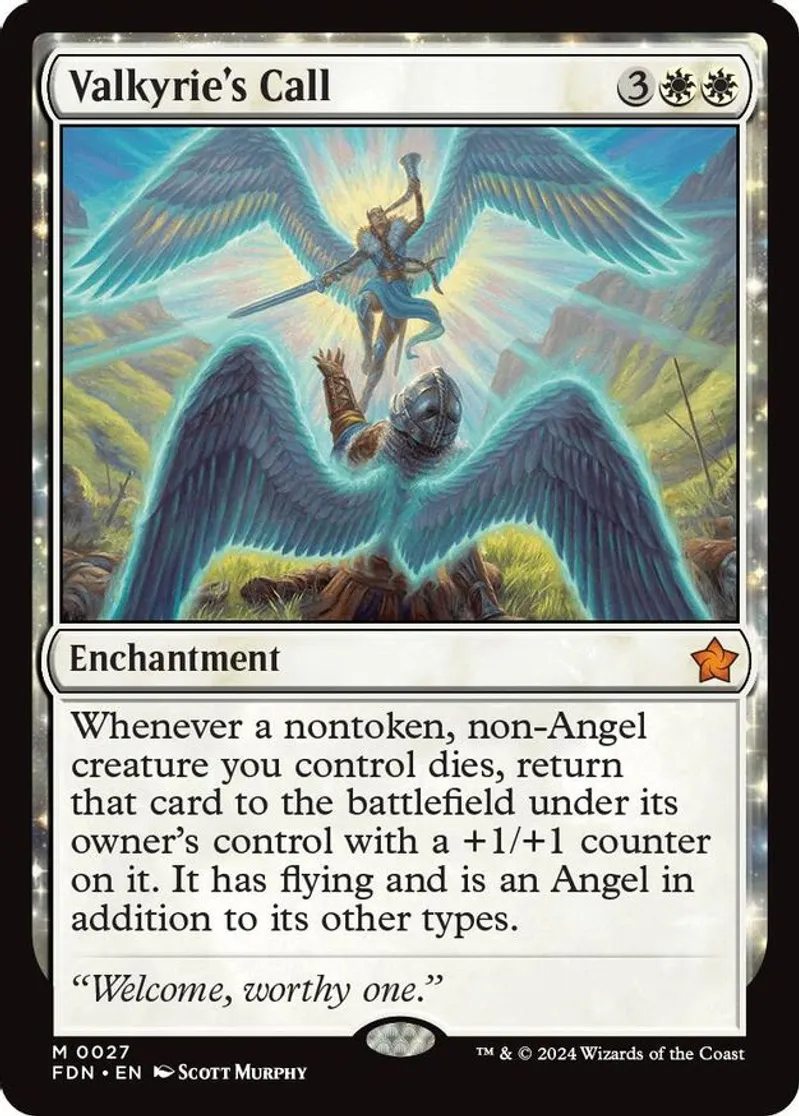 Magic: the Gathering (mtg) Mythic Rare enchantment Valkyrie's Call from Foundations (FDN) last updated 2025-12-17 15:15:32