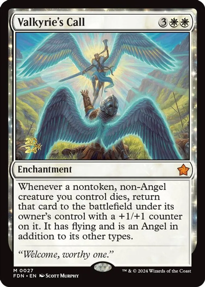 Magic: the Gathering (mtg) Mythic Rare enchantment Valkyrie's Call from Prerelease Cards (pPRE) last updated 2025-12-21 15:16:06