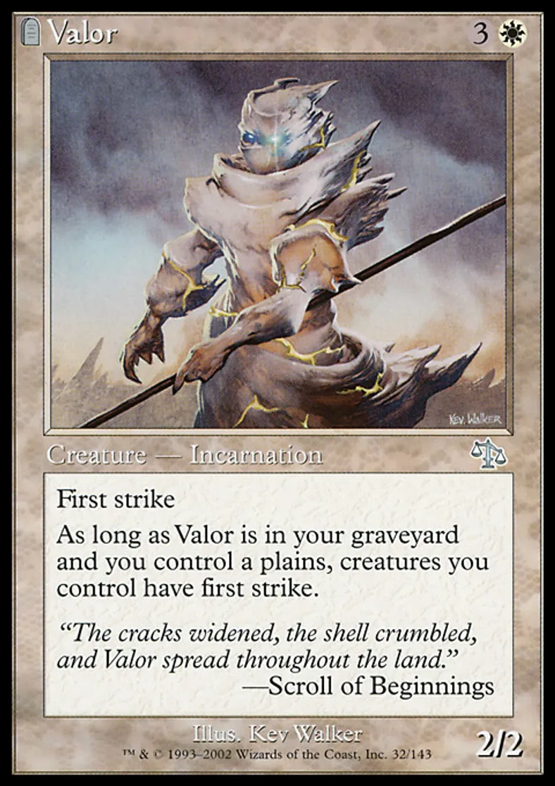 | Oracle Text | First strike As long as Valor is in your graveyard and you control a Plains, creatures you control have first strike. | ||