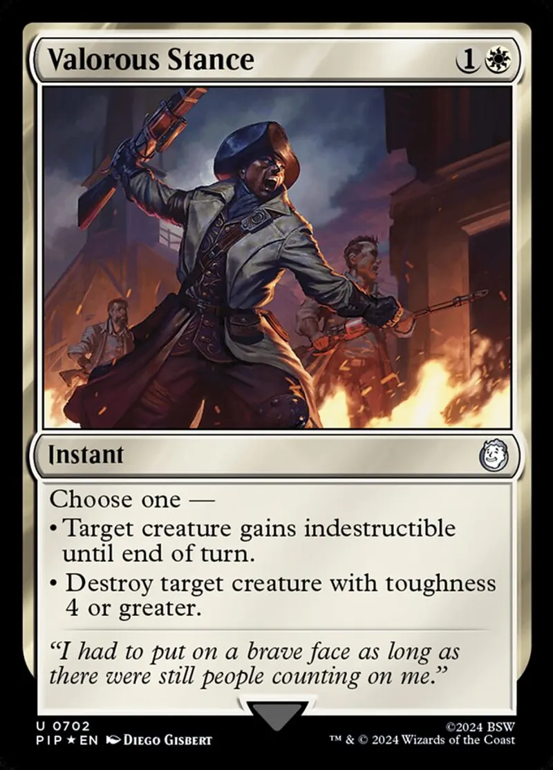 Magic: the Gathering (mtg) uncommon Instant Valorous Stance from Universes Beyond: Fallout (PIP) last updated 2025-12-13 15:57:31