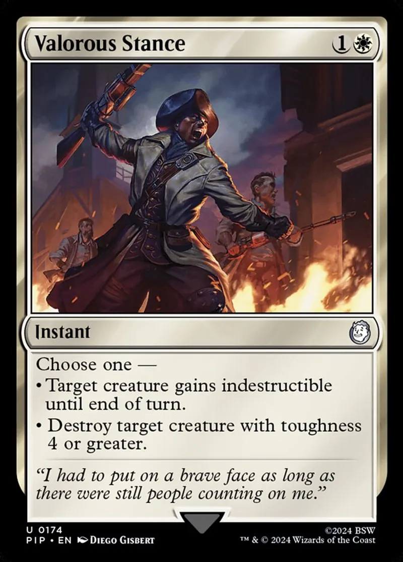 Magic: the Gathering (mtg) uncommon Instant Valorous Stance from Universes Beyond: Fallout (pip) last updated 2025-12-20 15:56:06