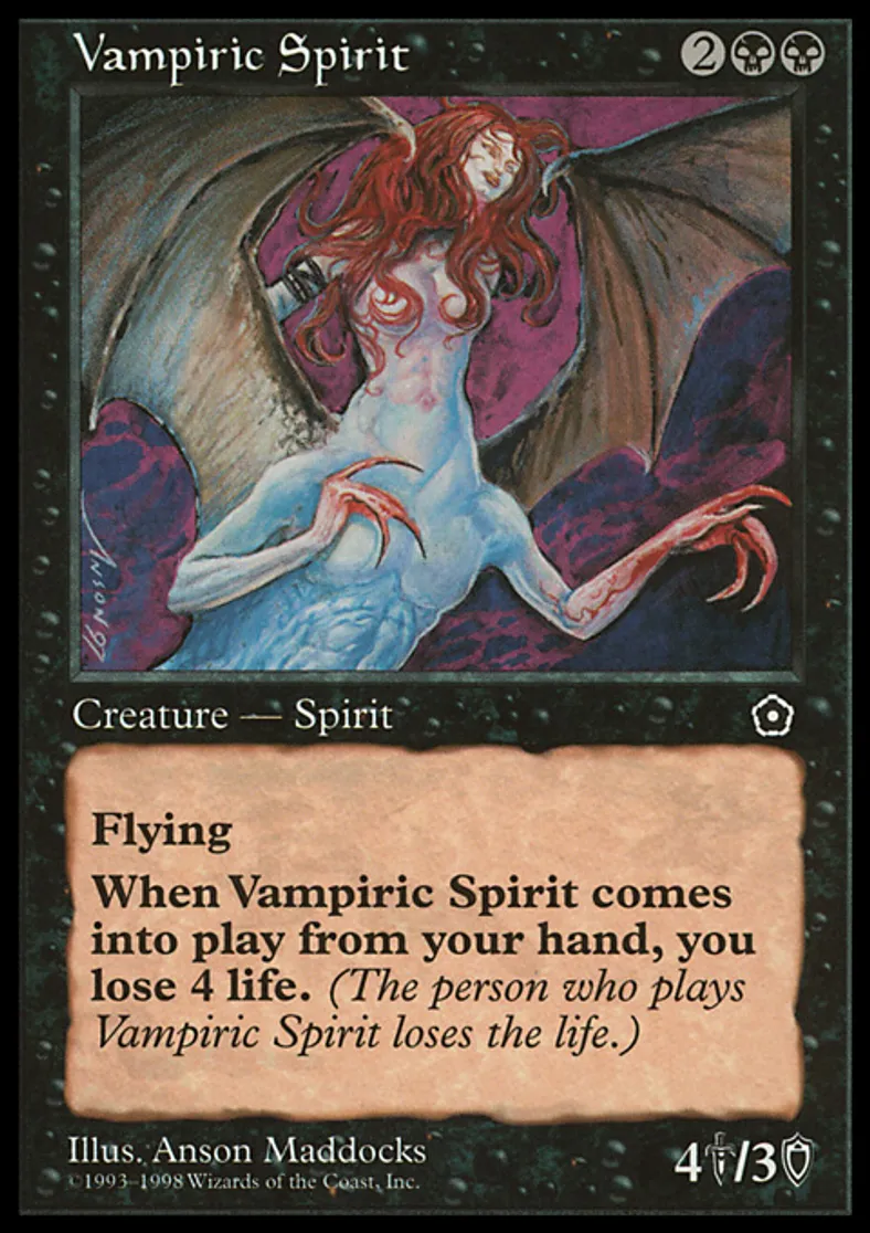 | Oracle Text | Flying When Vampiric Spirit enters the battlefield, you lose 4 life. | ||