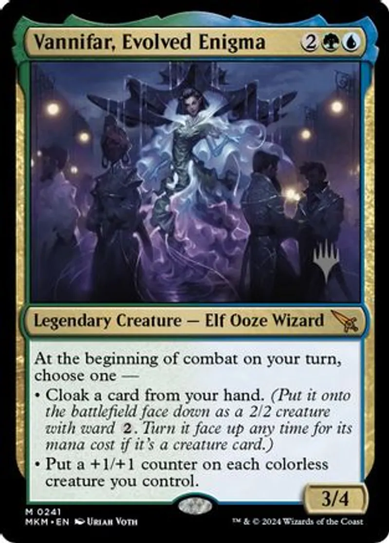 Magic: the Gathering (mtg) Mythic Rare Legendary Creature — Elf Ooze Wizard Vannifar, Evolved Enigma from Promo Pack: Murders at Karlov Manor (PMKM) last updated 2026-04-11 15:58:35