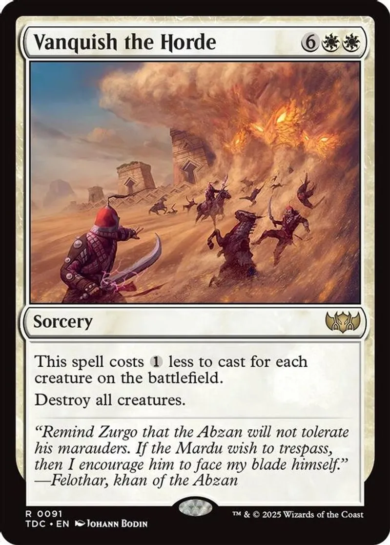 Magic: the Gathering (mtg) Rare sorcery Vanquish the Horde from Commander: Tarkir: Dragonstorm (TDC) last updated 2026-02-25 15:21:35