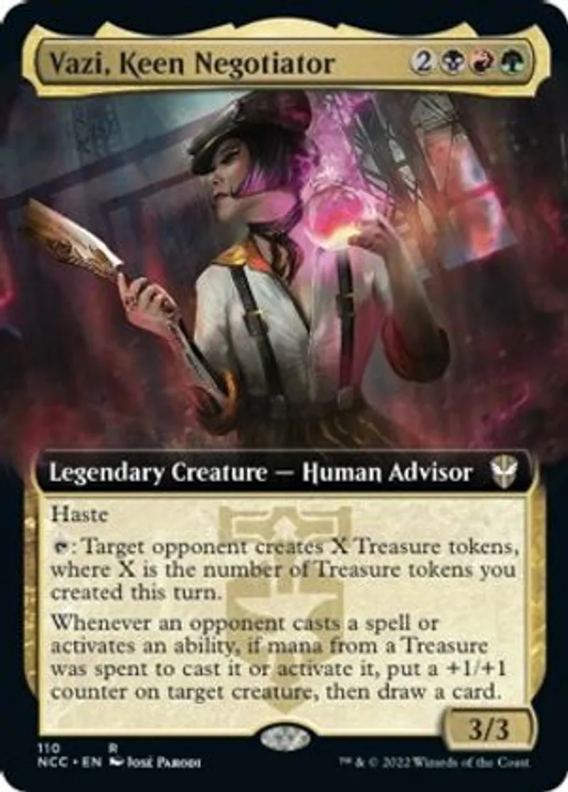 Vazi, Keen Negotiator (Extended Art) is a Rare in the set New Capenna Commander.