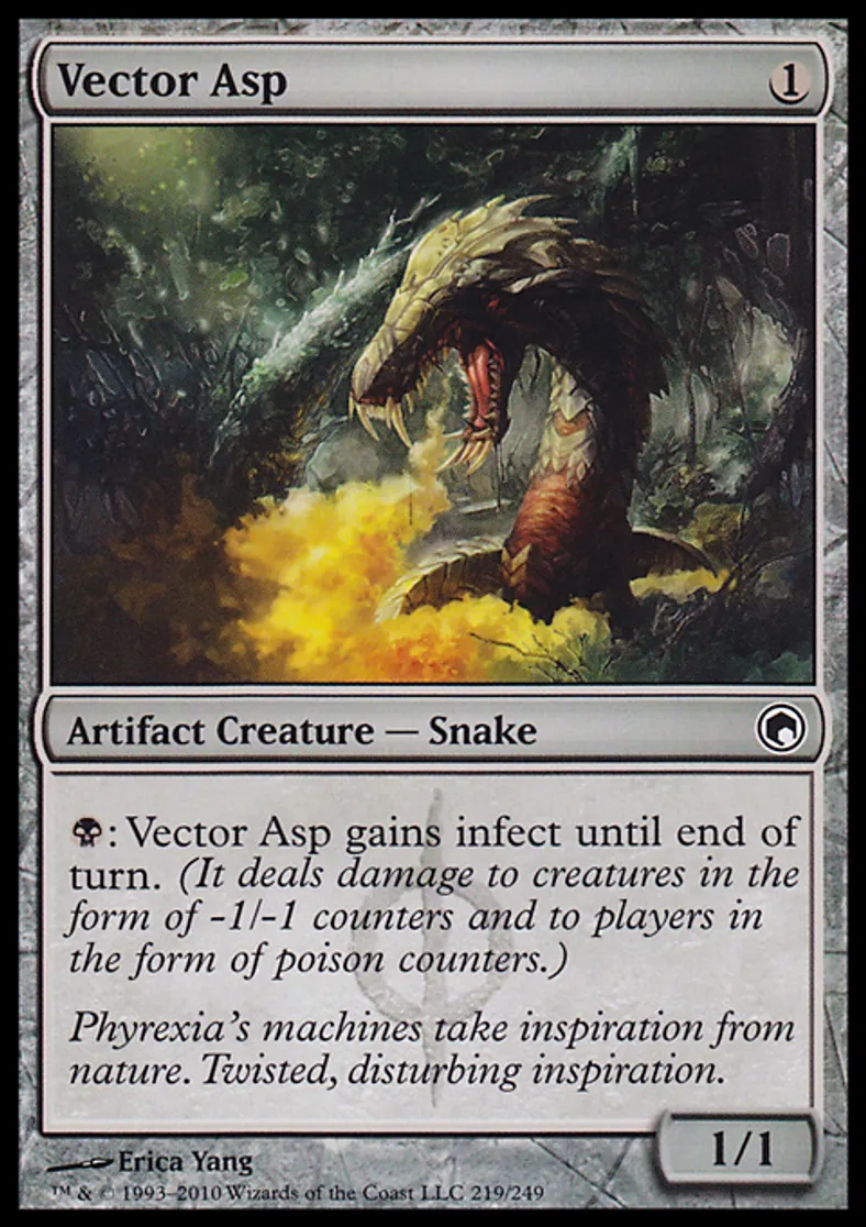 | Oracle Text | {{b}}: Vector Asp gains infect until end of turn. (It deals damage to creatures in the form of -1/-1 counters and to players in the form of poison counters.) | ||