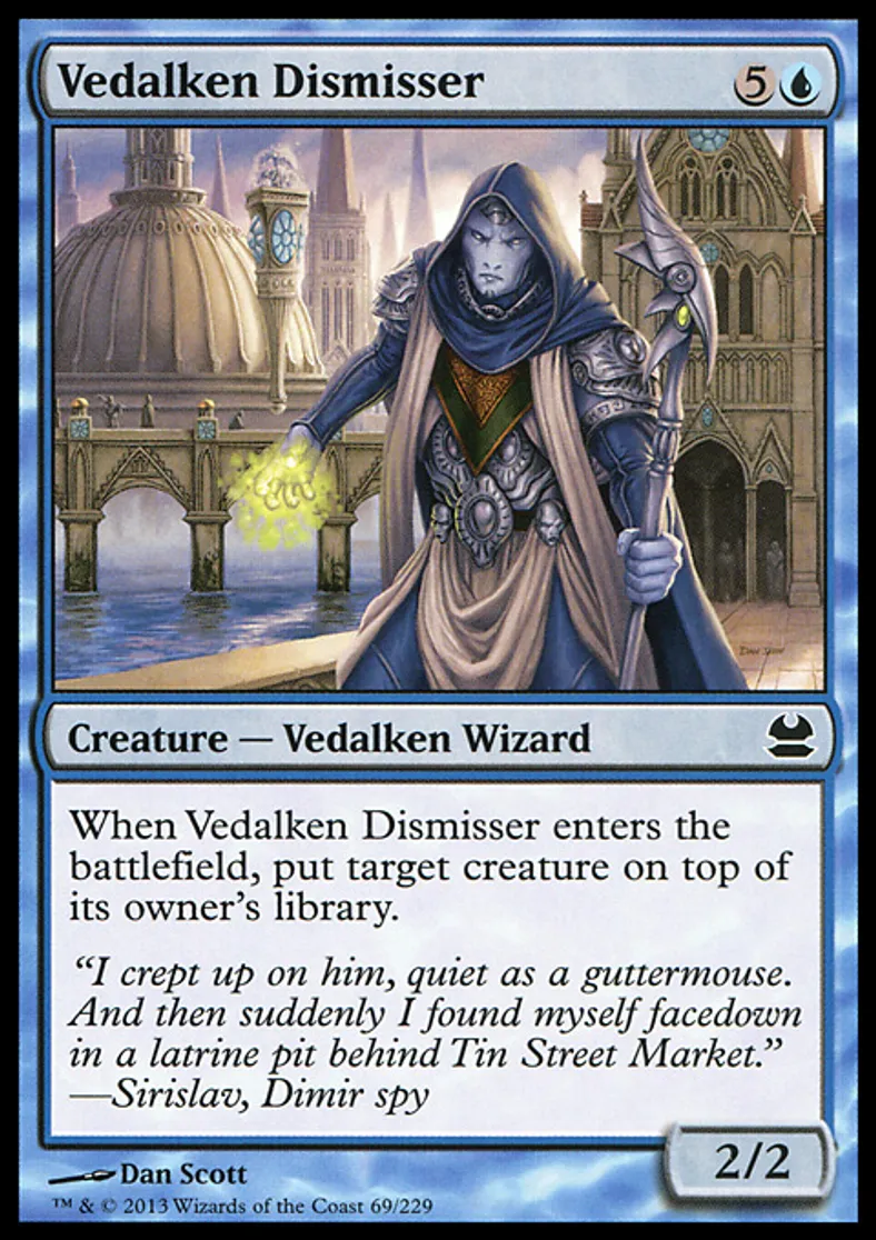 | Oracle Text | When Vedalken Dismisser enters the battlefield, put target creature on top of its owner's library. | ||