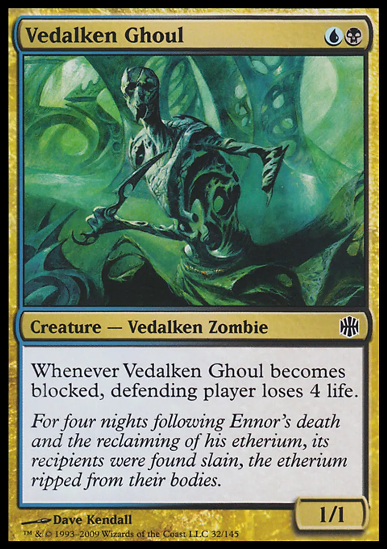 | Oracle Text | Whenever Vedalken Ghoul becomes blocked, defending player loses 4 life. | ||