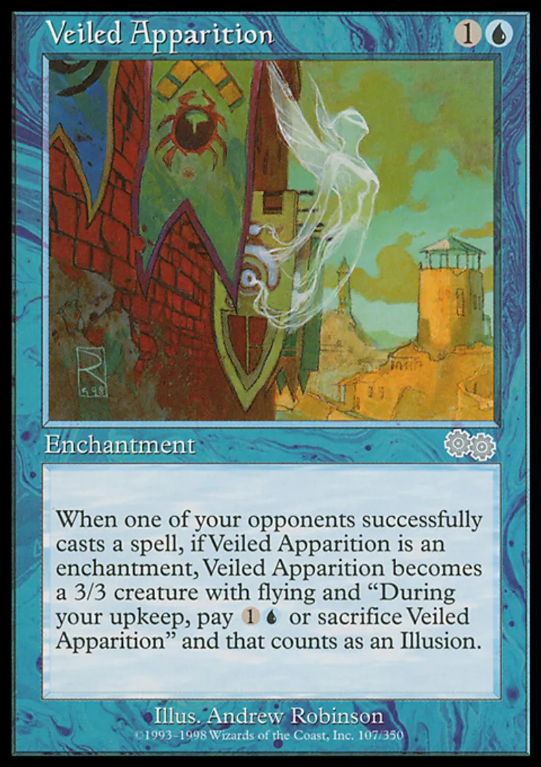 Magic: the Gathering (mtg) Uncommon Enchantment Veiled Apparition from Urza's Saga (USG) last updated 2026-02-21 17:32:02