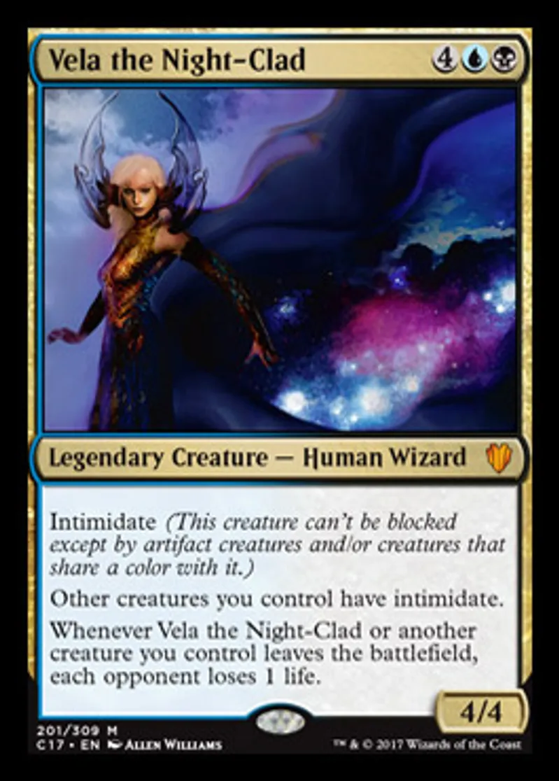 Vela the Night-Clad is a Mythic Rare in the set Commander 2017.
