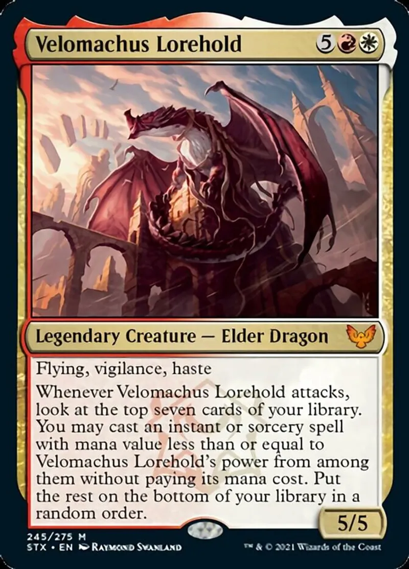 Magic: the Gathering (mtg) mythic Legendary Creature — Elder Dragon Velomachus Lorehold from Strixhaven: School of Mages (stx) last updated 2026-02-25 15:31:32