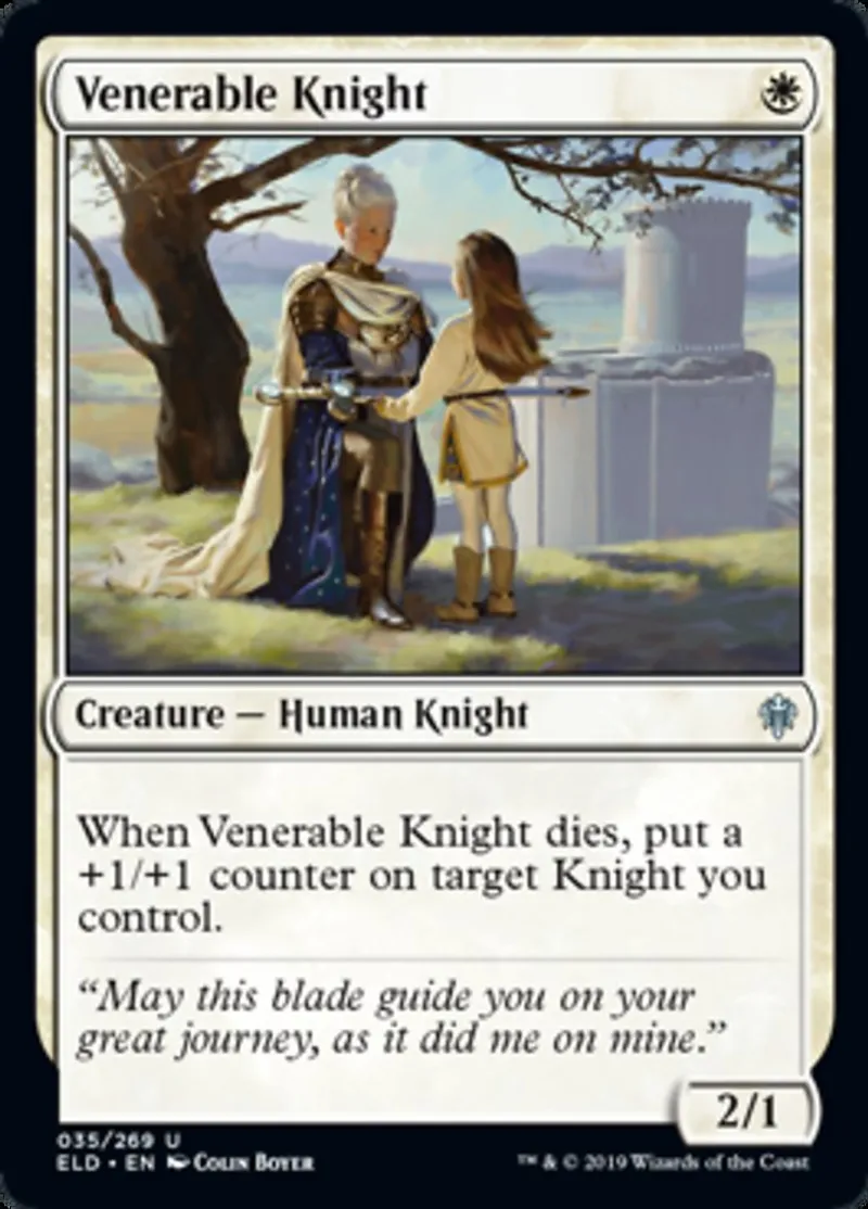 | Oracle Text | When Venerable Knight dies, put a +1/+1 counter on target Knight you control. | ||