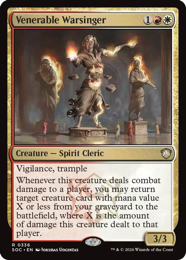 Magic: the Gathering (mtg) Rare creature — spirit cleric Venerable Warsinger from Commander: Secrets of Strixhaven (SOC) last updated 2026-04-17 00:29:09