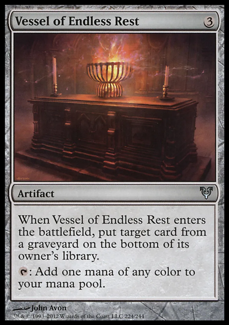 Magic: the Gathering (mtg) Uncommon Artifact Vessel of Endless Rest from Avacyn Restored (AVR) last updated 2026-02-25 15:58:03
