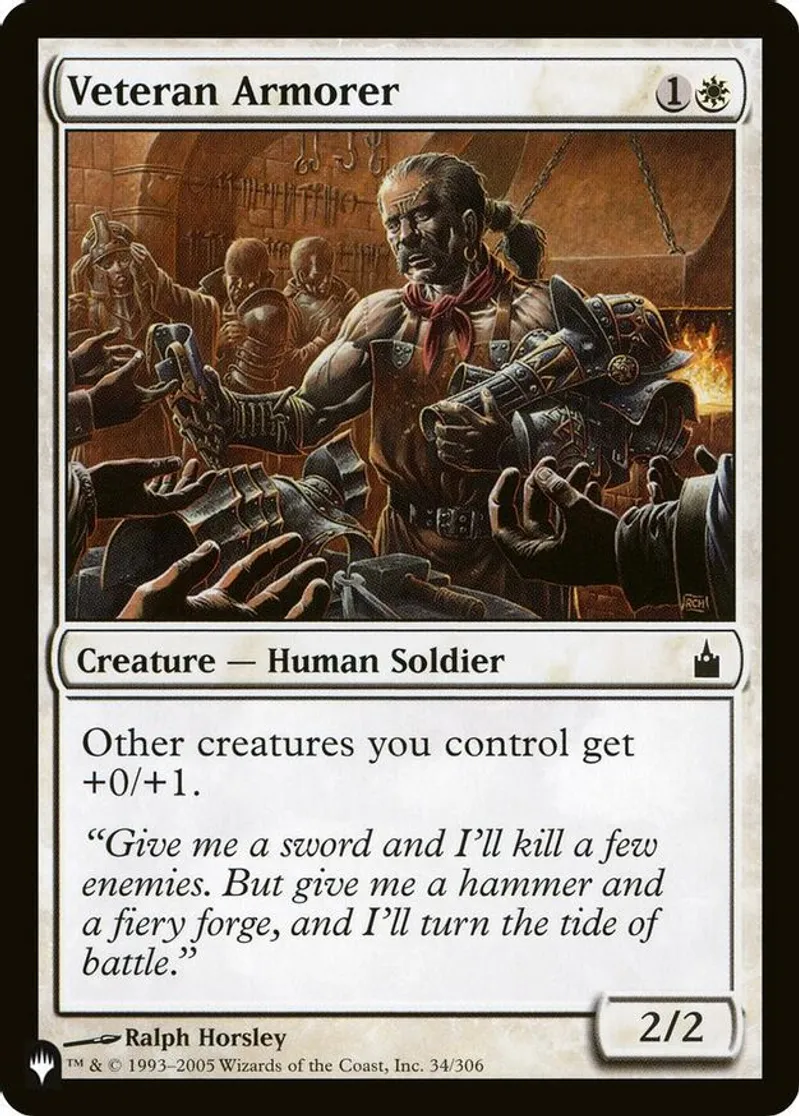 Magic: the Gathering (mtg) Common creature — human soldier Veteran Armorer from The List Reprints (PLIST) last updated 2026-02-21 15:29:05