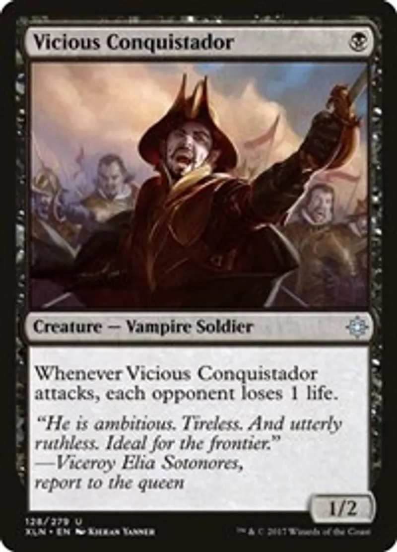 Magic: the Gathering (mtg) Uncommon Creature - Vampire Soldier Vicious Conquistador from Ixalan (XLN) last updated 2026-02-25 16:05:36