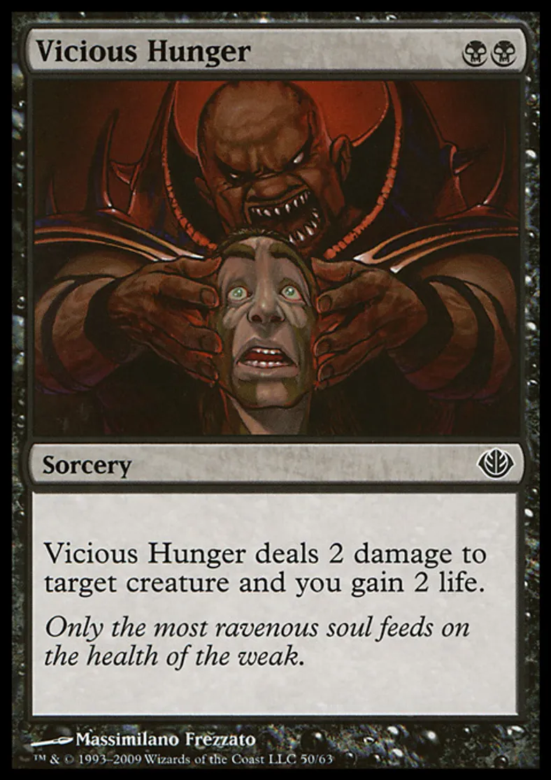 | Oracle Text | Vicious Hunger deals 2 damage to target creature and you gain 2 life. | ||