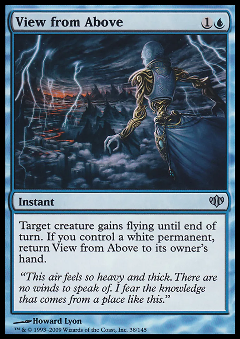 | Oracle Text | Target creature gains flying until end of turn. If you control a white permanent, return View from Above to its owner's hand. | ||