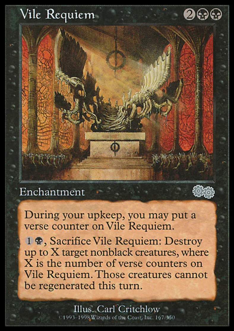Magic: the Gathering (mtg) Uncommon Enchantment Vile Requiem from Urza's Saga (USG) last updated 2026-02-21 17:10:08