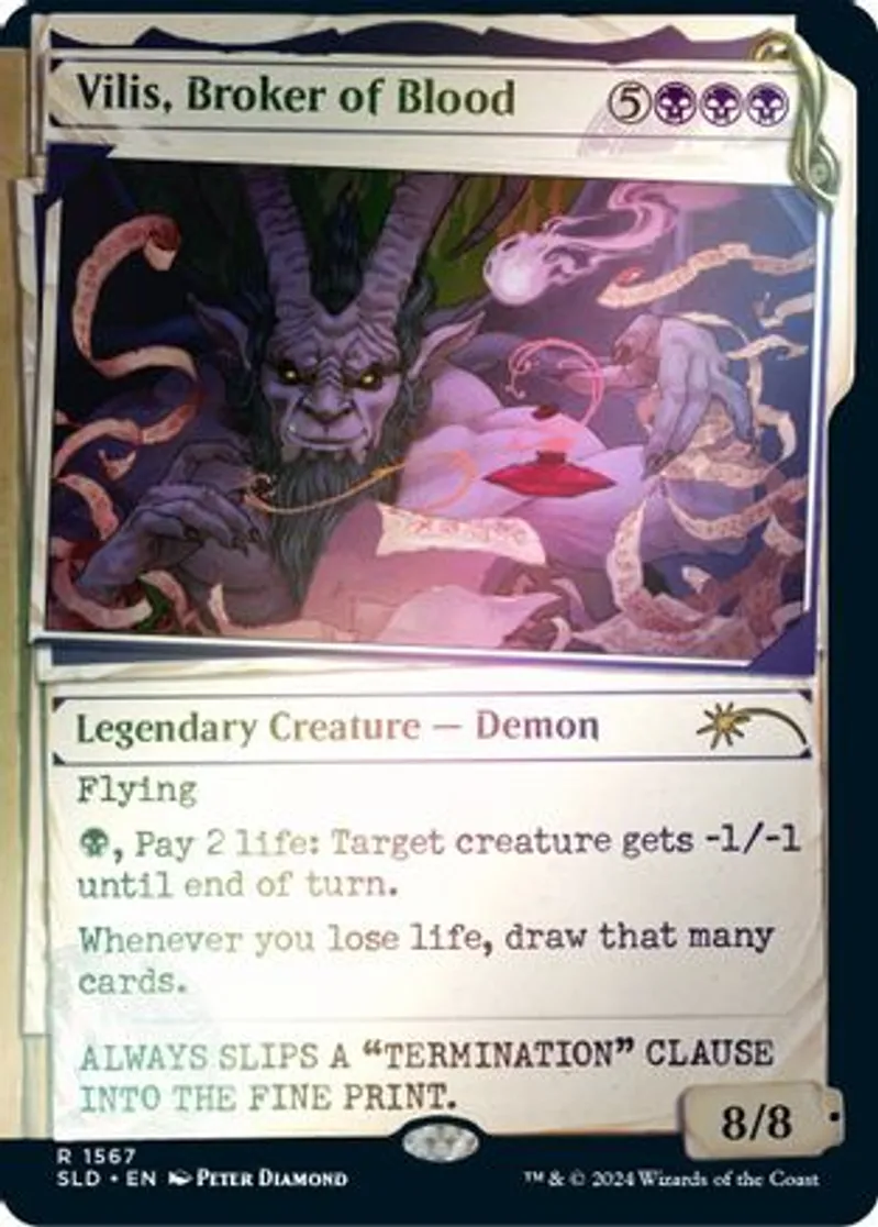 Magic: the Gathering (mtg) Rare Legendary Creature — Demon Vilis, Broker of Blood from Secret Lair Drop Series (SLD) last updated 2026-02-25 14:17:36
