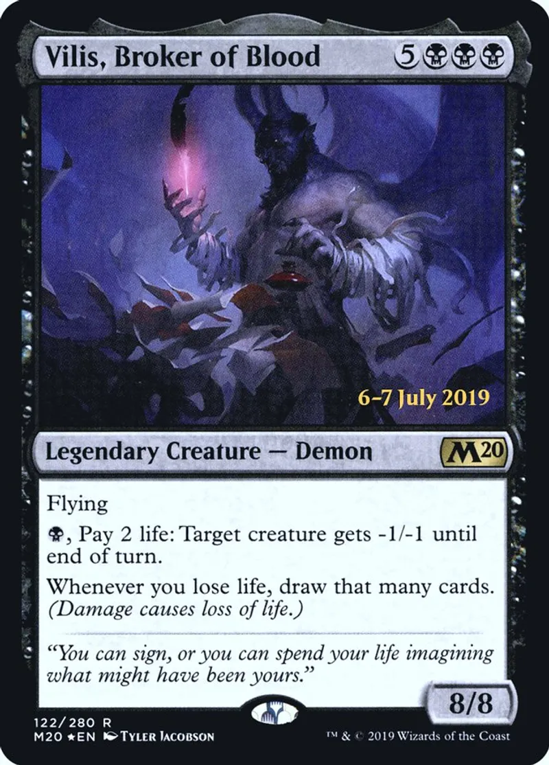Magic: the Gathering (mtg) Rare Legendary Creature — Demon Vilis, Broker of Blood from Prerelease Cards (pPRE) last updated 2026-02-24 14:40:36