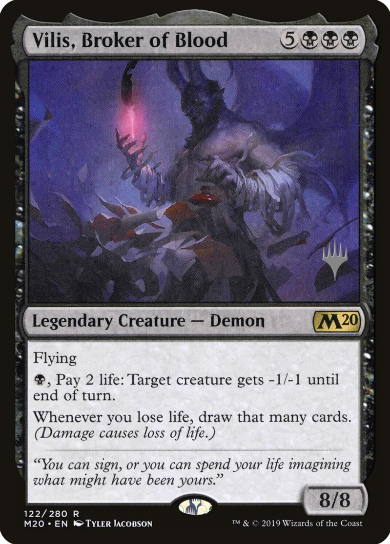 Magic: the Gathering (mtg) Rare Legendary Creature — Demon Vilis, Broker of Blood from Promo Pack: Core Set 2020 (pPCS) last updated 2026-02-24 16:08:32