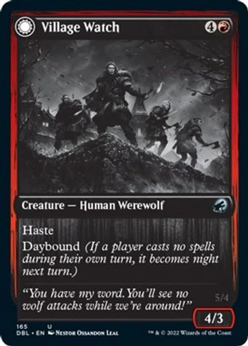 Magic: the Gathering (mtg) Mythic Rare Creature — Human Werewolf Village Watch from Innistrad: Double Feature (dbl) last updated 2026-02-24 15:06:02