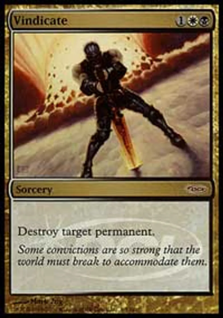 Magic: the Gathering (mtg) Special Sorcery Vindicate from Judge Promos (pJGP) last updated 2026-02-24 16:02:06