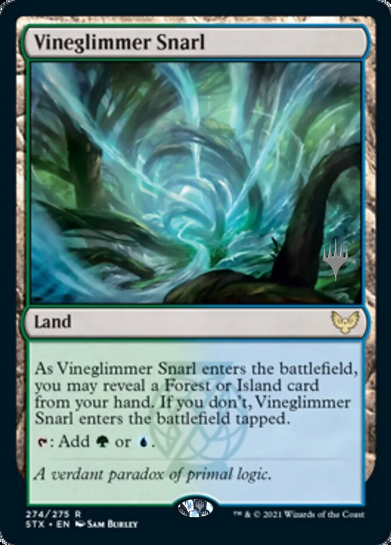 | Oracle Text | As Vineglimmer Snarl enters the battlefield, you may reveal a Forest or Island card from your hand. If you don't, Vineglimmer Snarl enters the battlefield tapped.