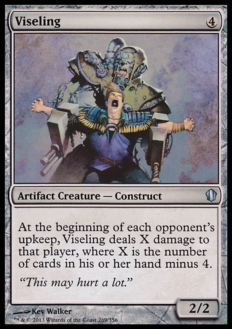 | Oracle Text | At the beginning of each opponent's upkeep, Viseling deals X damage to that player, where X is the number of cards in his or her hand minus 4. | ||