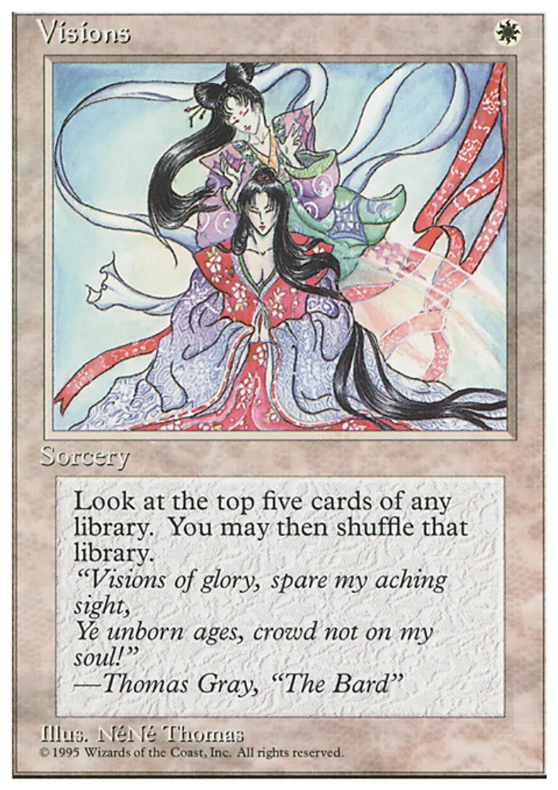 | Flavor Text | "Visions of glory, spare my aching sight,Ye unborn ages, crowd not on my soul"—Thomas Gray, "The Bard" | ||