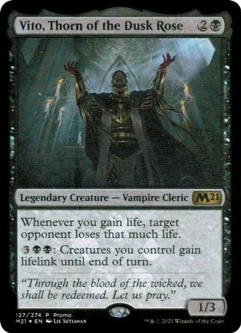 Magic: the Gathering (mtg) Promo legendary creature — vampire cleric Vito, Thorn of the Dusk Rose from Media Promos (pMEI) last updated 2026-02-24 14:20:02