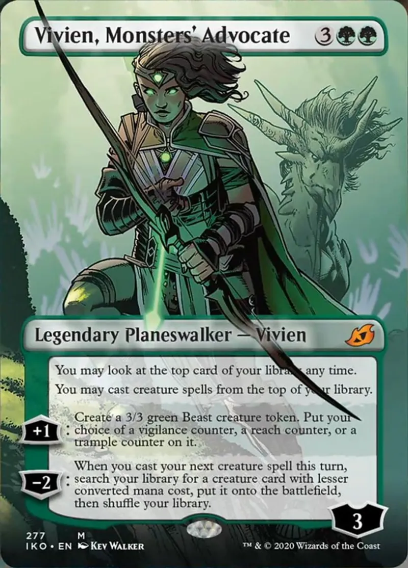 Vivien, Monsters' Advocate (Borderless) is a Mythic Rare in the set Ikoria: Lair of Behemoths.