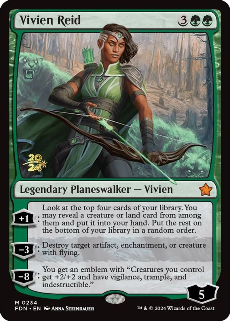 Magic: the Gathering (mtg) Mythic Rare legendary planeswalker — vivien Vivien Reid from Prerelease Cards (pPRE) last updated 2026-02-24 15:19:32
