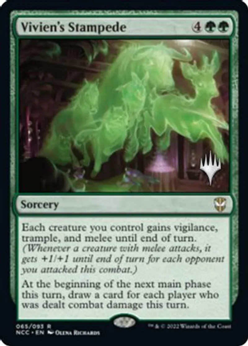 Magic: the Gathering (mtg) Rare Sorcery Vivien's Stampede from Promo Pack: Streets of New Capenna (PSNC) last updated 2026-02-25 14:35:32