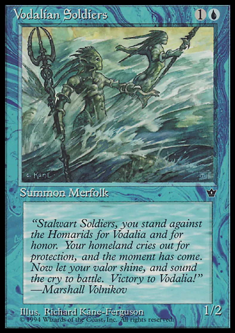 Magic: the Gathering (mtg) Common Creature - Merfolk Soldier Vodalian Soldiers from Fallen Empires (FEM) last updated 2026-02-21 17:29:02