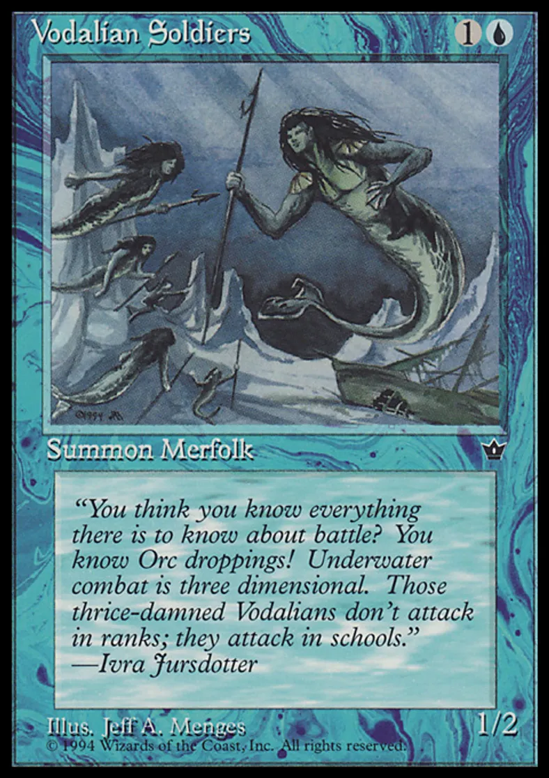 Magic: the Gathering (mtg) Common Creature - Merfolk Soldier Vodalian Soldiers from Fallen Empires (FEM) last updated 2026-02-21 17:29:02