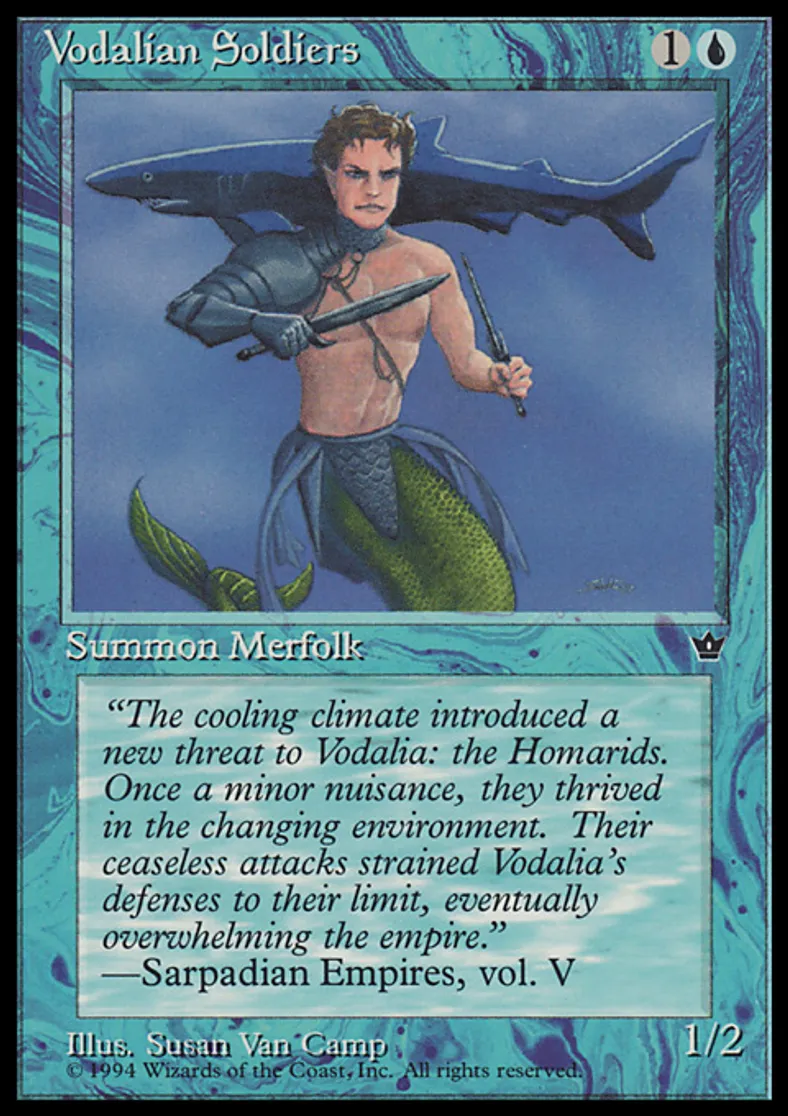Magic: the Gathering (mtg) Common Creature - Merfolk Soldier Vodalian Soldiers from Fallen Empires (FEM) last updated 2026-02-21 17:29:02