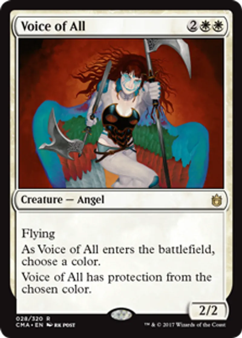 | Oracle Text | Flying As Voice of All enters the battlefield, choose a color. Voice of All has protection from the chosen color. | ||
