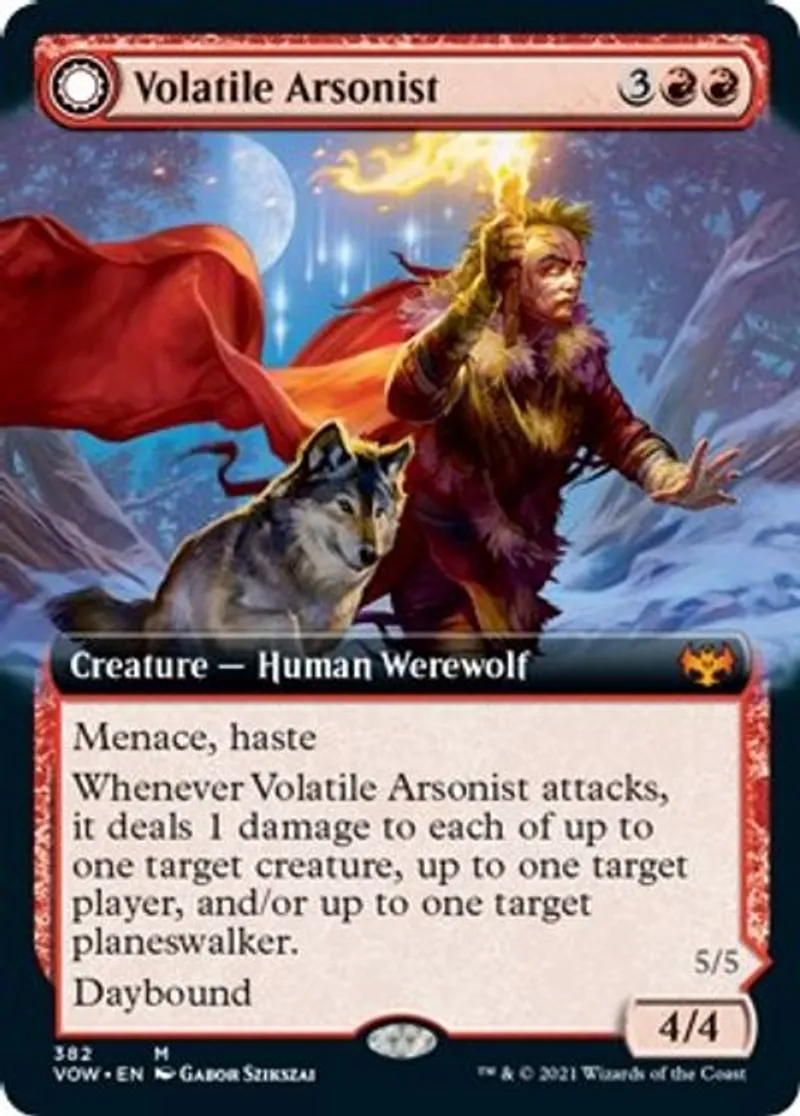 Magic: the Gathering (mtg) Mythic Rare Creature - Human Werewolf Volatile Arsonist from Innistrad: Crimson Vow (VOW) last updated 2026-02-24 15:34:32