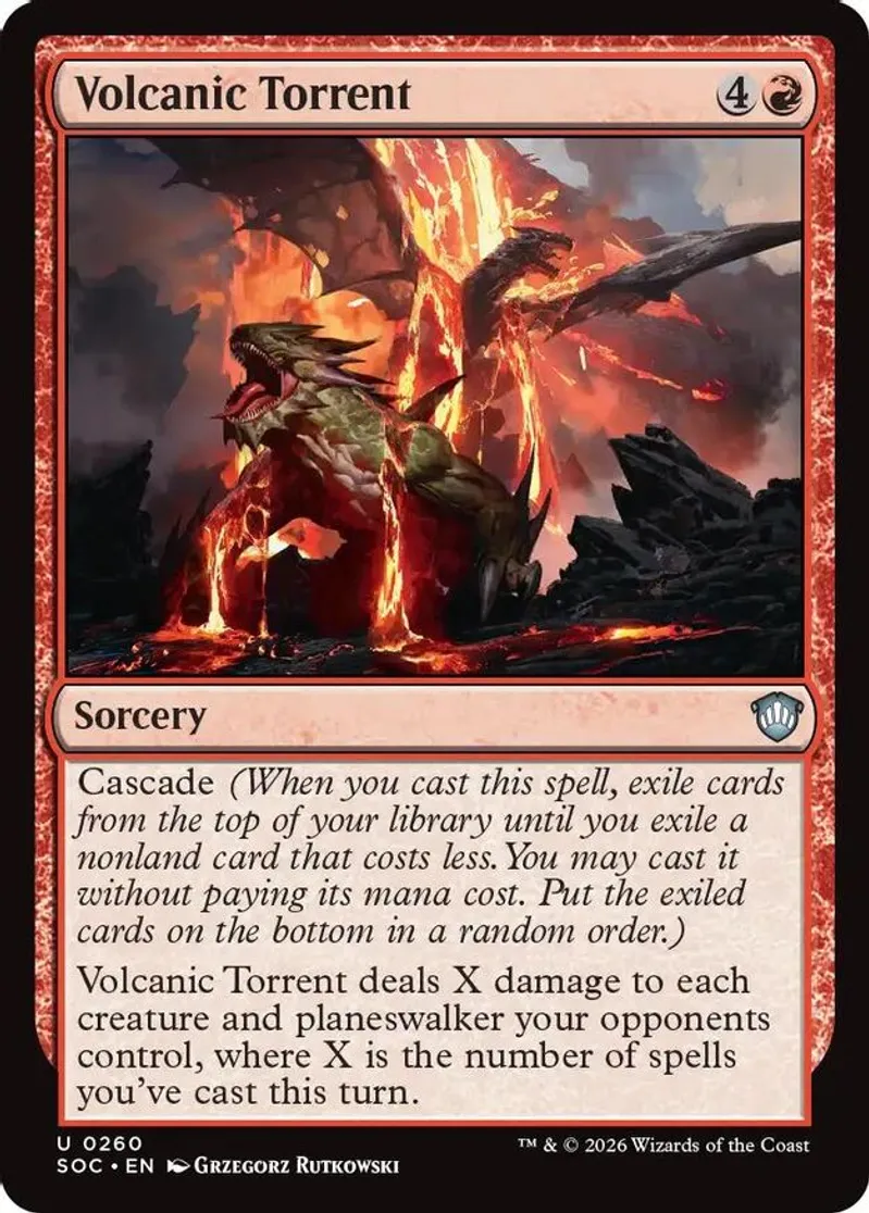Magic: the Gathering (mtg) Uncommon sorcery Volcanic Torrent from Commander: Secrets of Strixhaven (SOC) last updated 2026-04-17 00:15:13