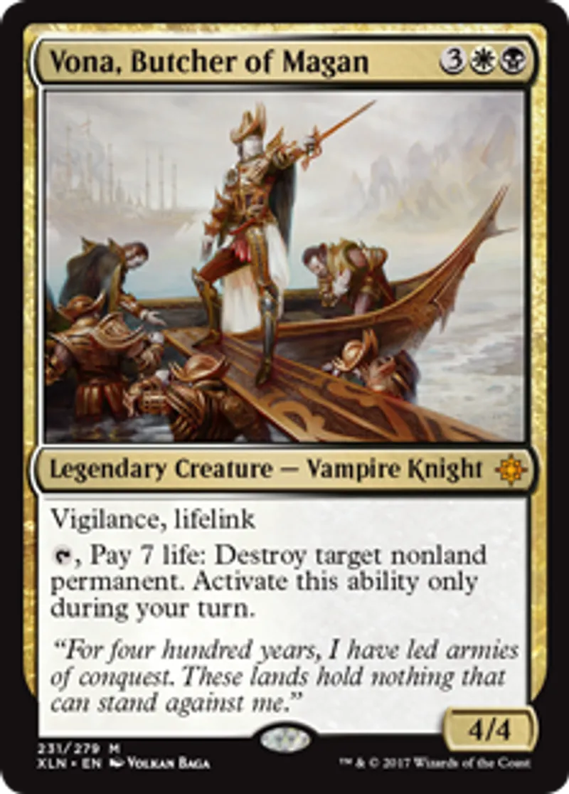 Magic: the Gathering (mtg) Mythic Rare Legendary Creature - Vampire Knight Vona, Butcher of Magan from Ixalan (XLN) last updated 2026-02-24 16:05:06