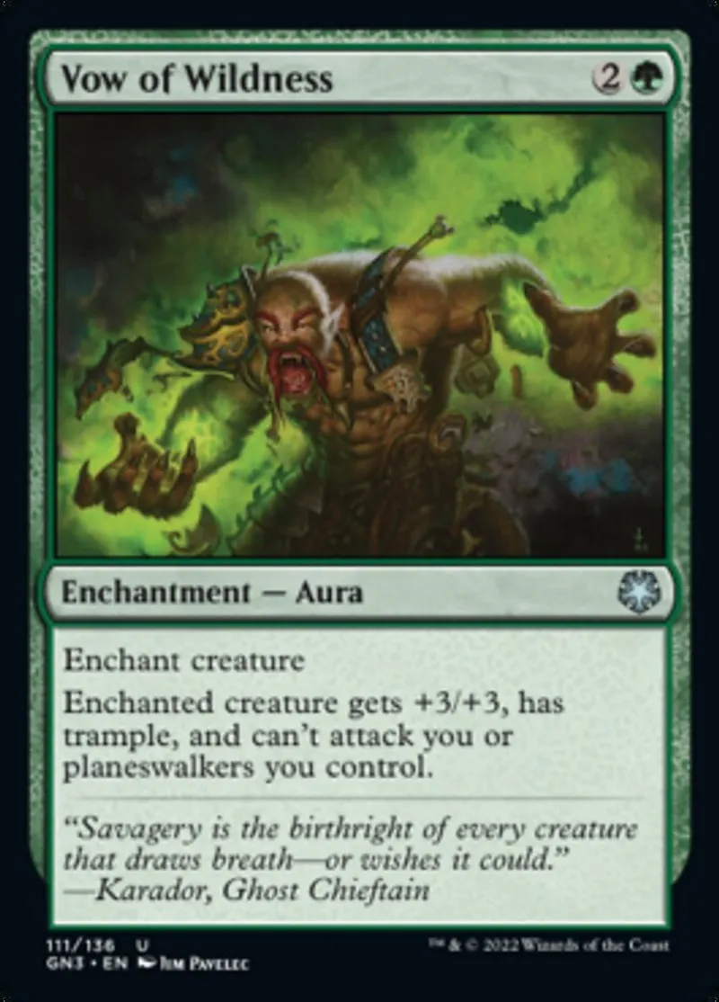 Magic: the Gathering (mtg) uncommon Enchantment — Aura Vow of Wildness from Game Night: Free-for-All (gn3) last updated 2026-02-21 16:14:36
