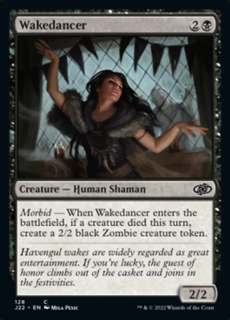 | Oracle Text | Morbid — When Wakedancer enters the battlefield, if a creature died this turn, create a 2/2 black Zombie creature token. | ||