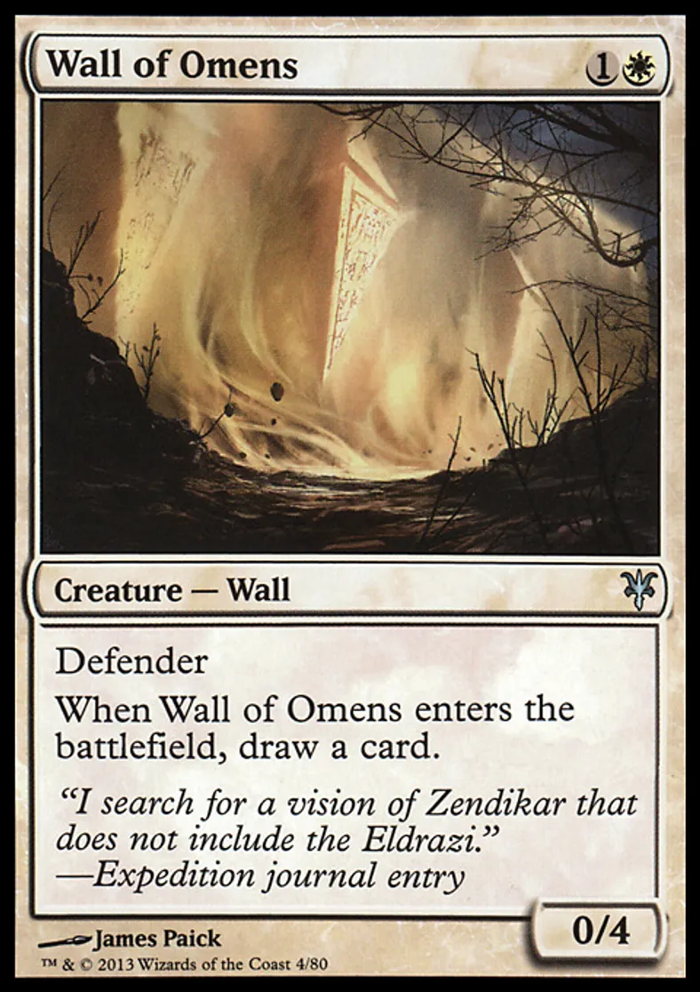 | Oracle Text | Defender When Wall of Omens enters the battlefield, draw a card. | ||