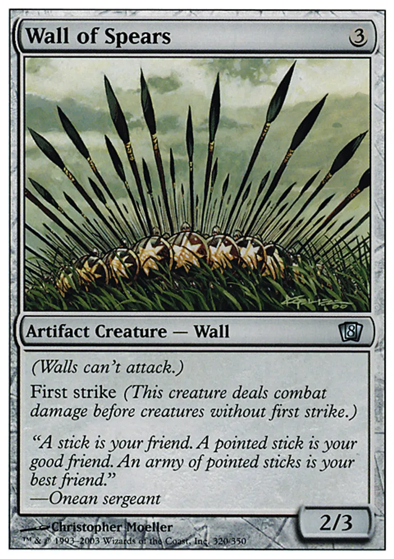 Magic: the Gathering (mtg) Uncommon Artifact Creature - Wall Wall of Spears from Eighth Edition (8ED) last updated 2026-04-11 17:41:04
