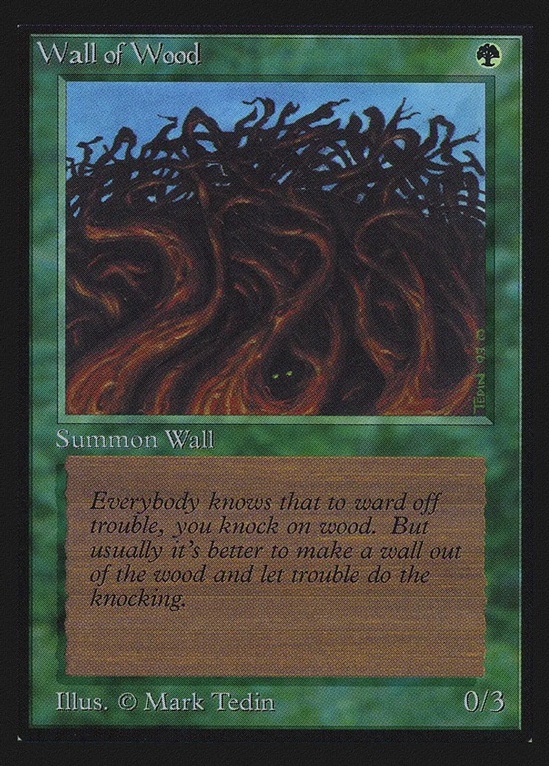 | Flavor Text | Everybody knows that to ward off trouble, you knock on wood. But usually it's better to make a wall out of the wood and let trouble do the knocking. | ||