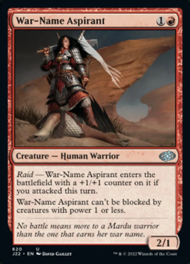 Magic: the Gathering (mtg) uncommon Creature — Human Warrior War-Name Aspirant from Jumpstart 2022 (j22) last updated 2026-02-21 16:17:32