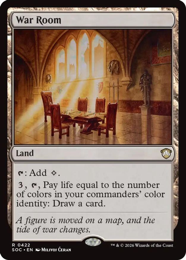 Magic: the Gathering (mtg) Rare land War Room from Commander: Secrets of Strixhaven (SOC) last updated 2026-04-17 00:26:39
